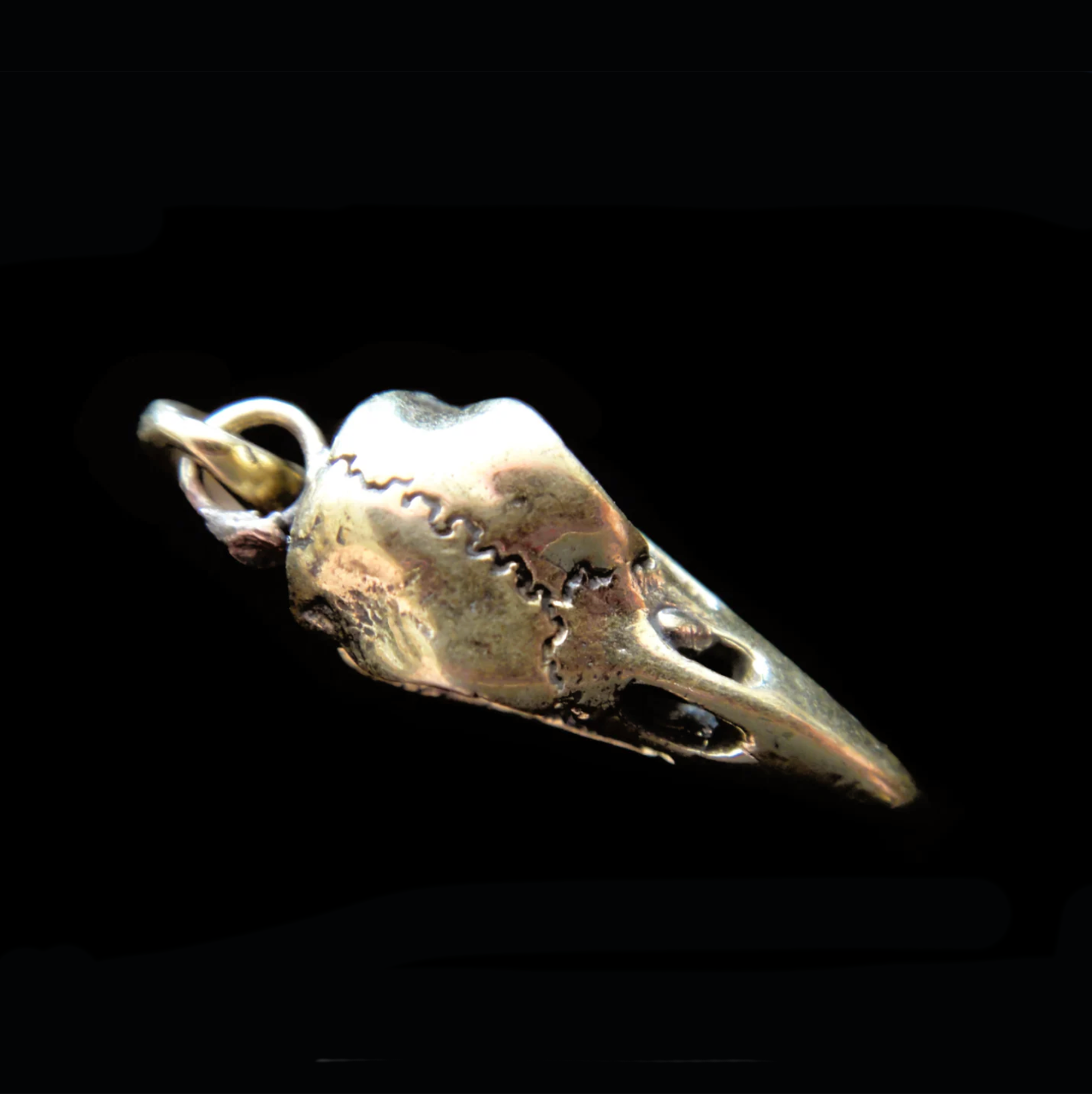 This pendant was cast from a mold made from an actual raven skull.