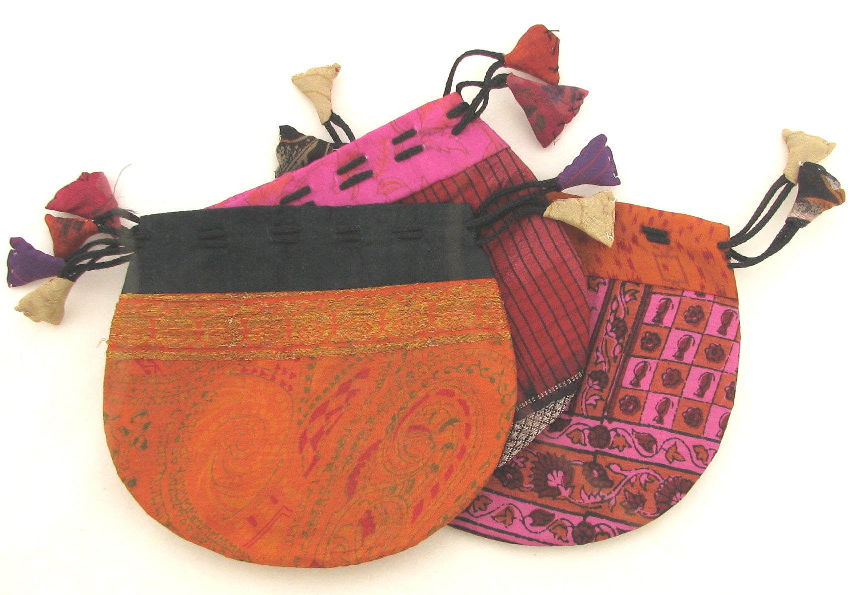 Each bag is unique as they are handmade in Nepal from retired raw silk saris. Makes a great re-usable gift bag ... just attach a gift card. Great prints and colors.